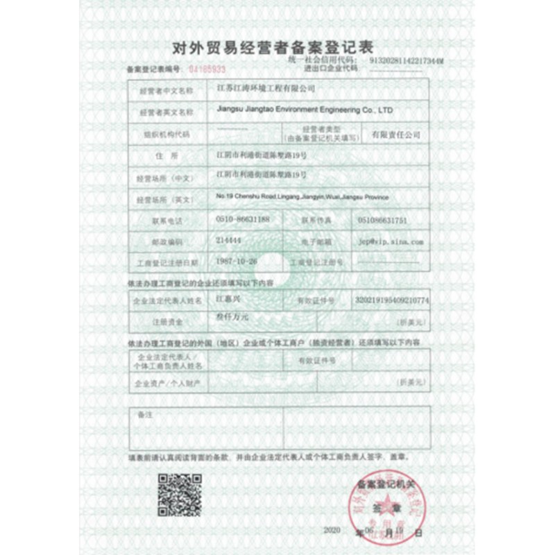 对外贸易经营者备案登记表