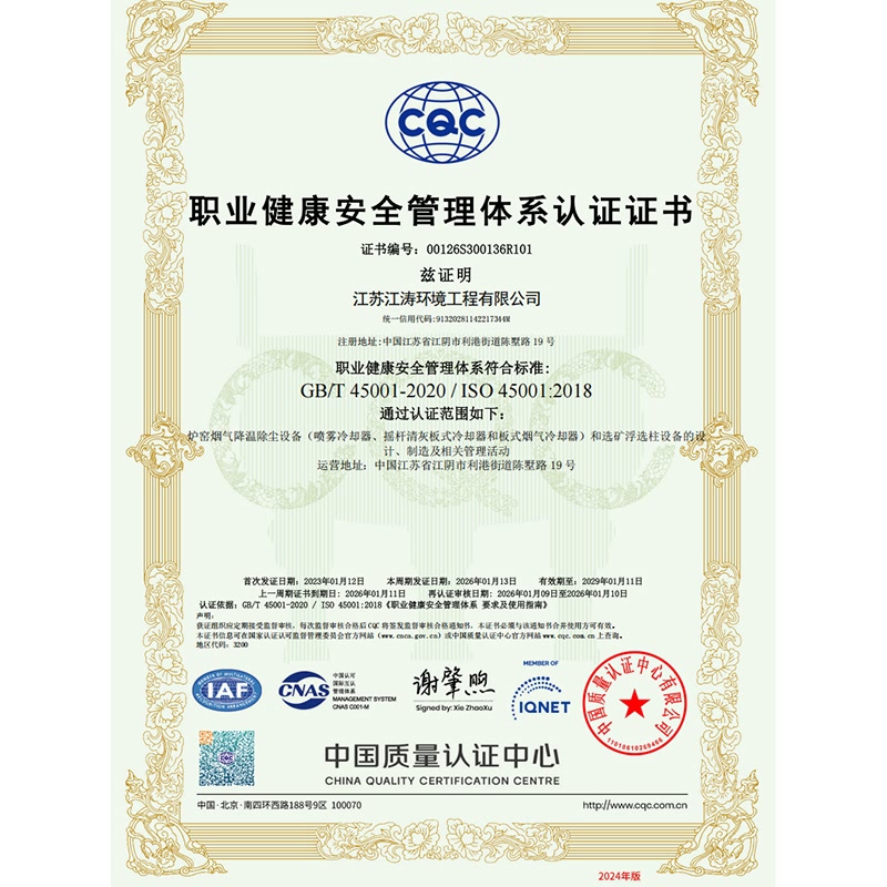 职业健康安全管理系统认证证书