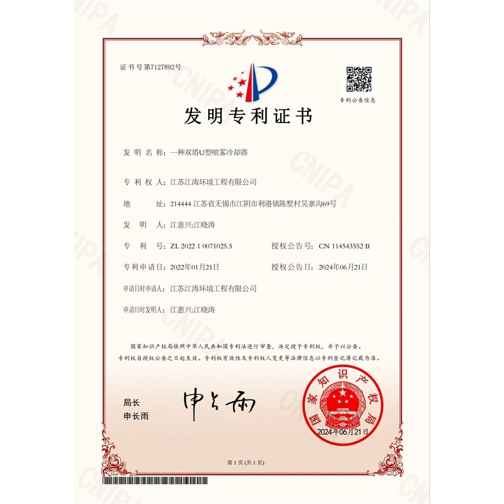 专利:逆流式喷雾冷却器