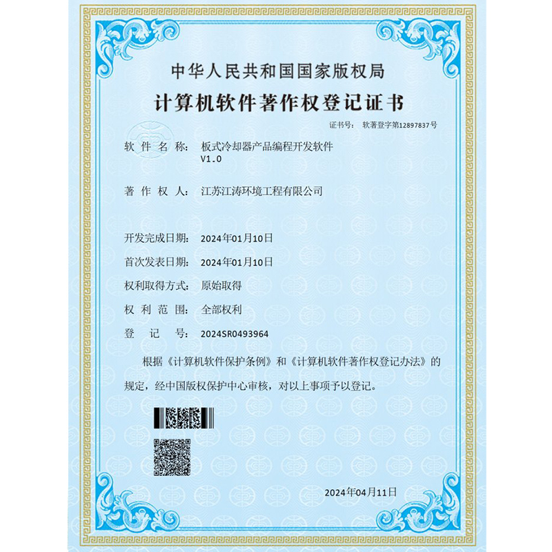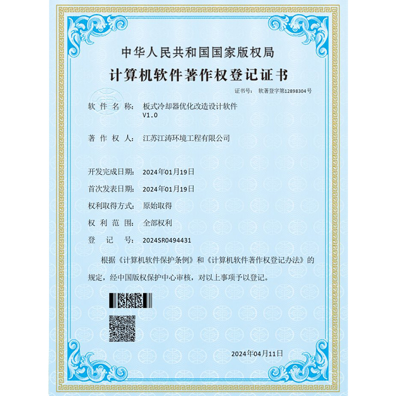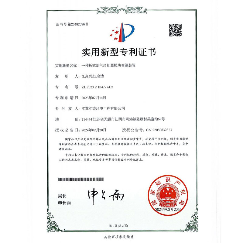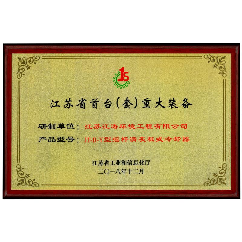 JT-B-Y型摇杆清灰板式冷却器首台套重大装备产品证书