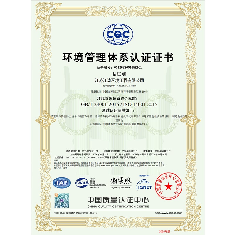 环境管理体系认证证书